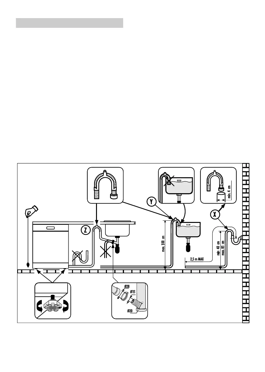 ■ Le tuyau de vidange fixe doit avoir au