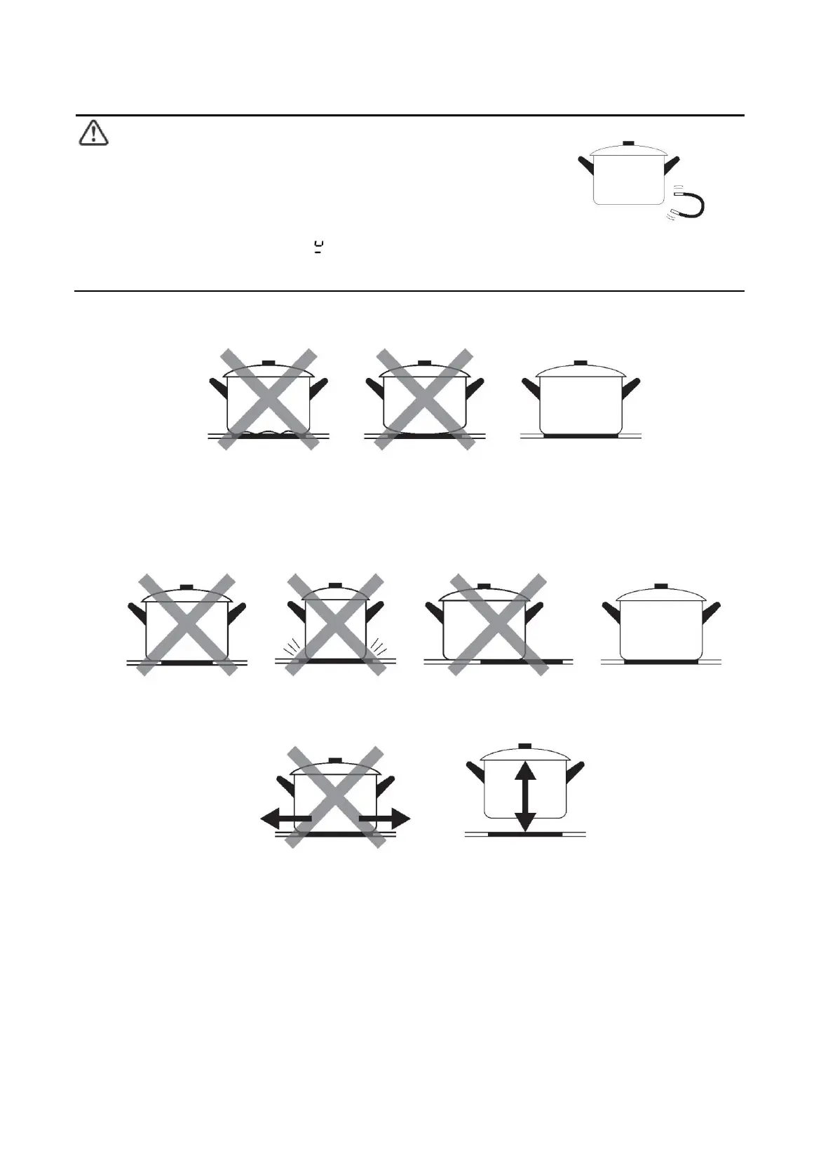 • Kuhinjska posoda iz naslednjih materialov ni primerna: čisto nerjaveče jeklo, aluminij ali baker brez magnetnega dna,