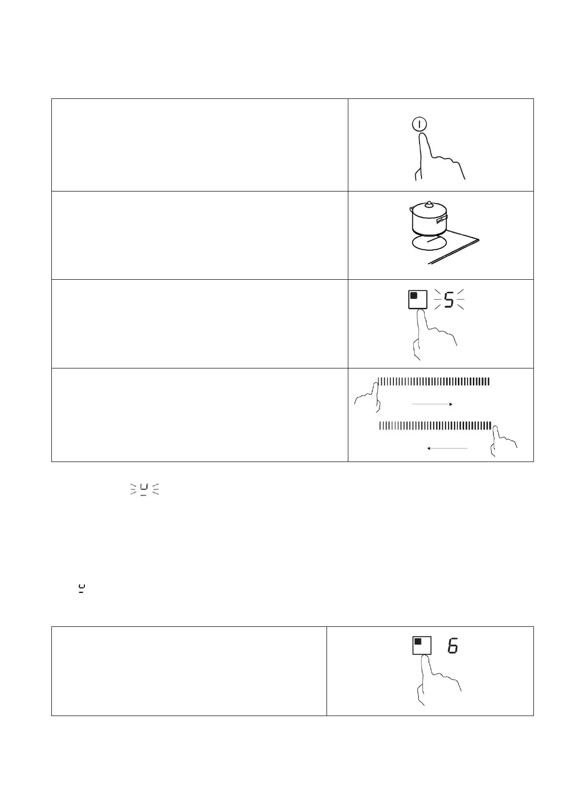 A „ ” kijelző automatikusan kikapcsol 1 perc után, ha nem helyez megfelelő serpenyőt a főzőzónára.