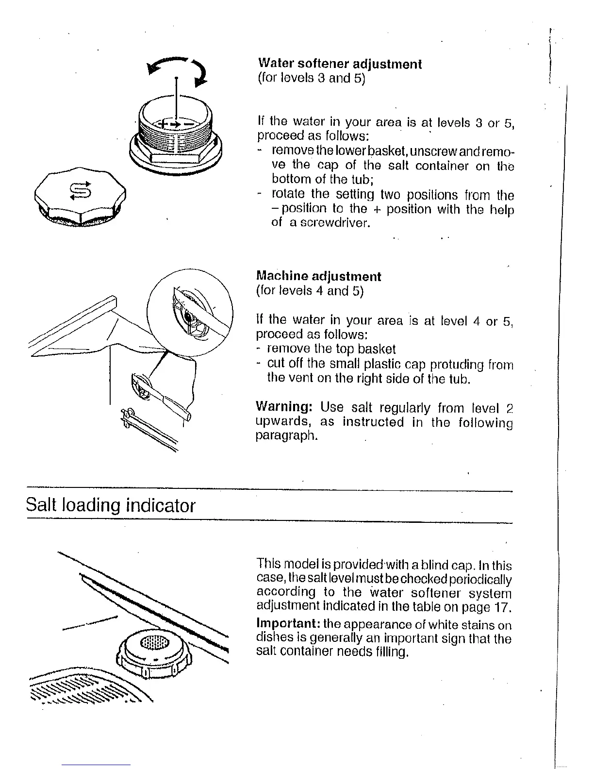 Candy CDW 254 - Water Softener Adjustment for Levels 3 and 5; Machine Adjustment for Levels 4 and 5; Salt Loading Indicator