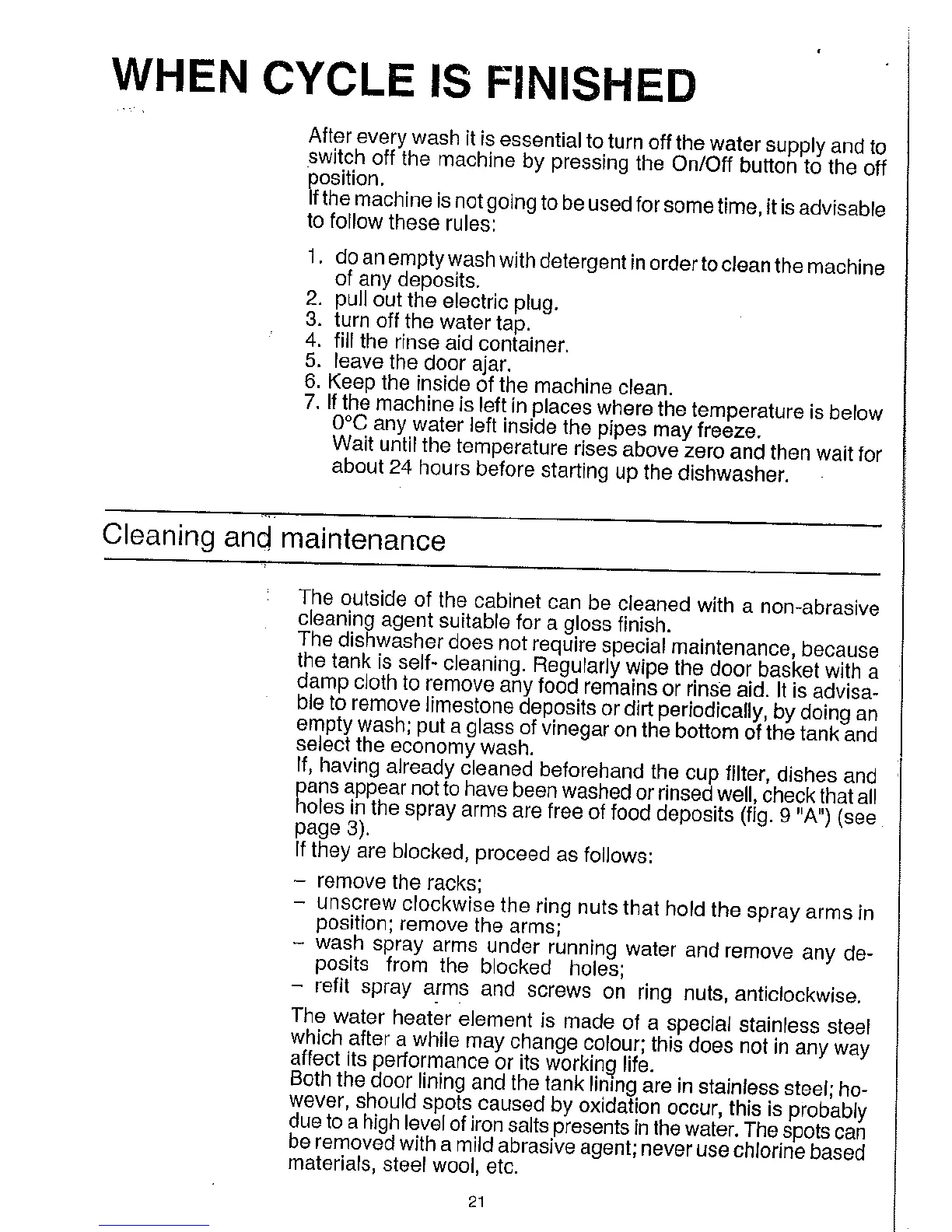 Candy CDW 254 - End of Cycle Procedures; Cleaning the Dishwasher