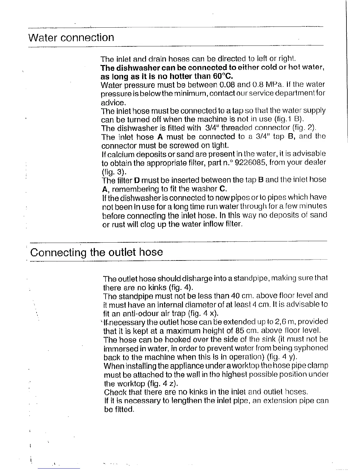 Candy CDW 254 - Water Connection; Connecting the Outlet Hose