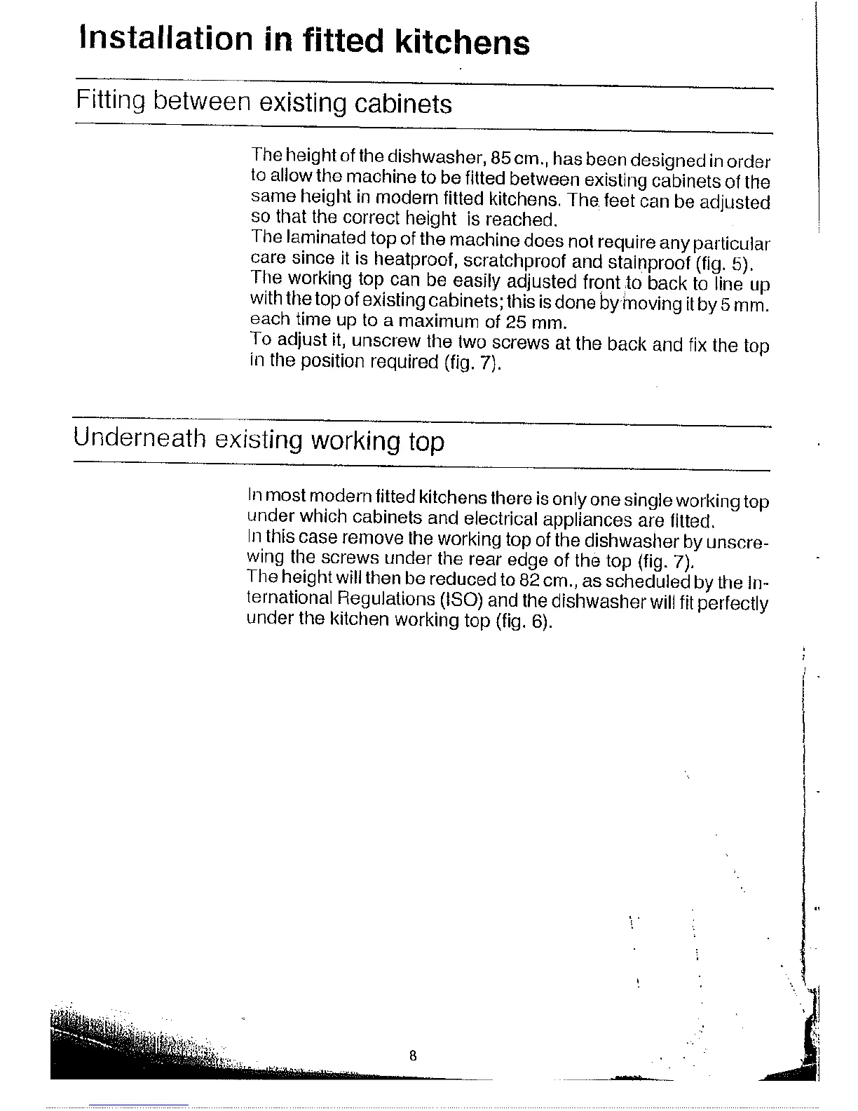 Candy CDW 254 - Installation in Fitted Kitchens; Fitting Between Existing Cabinets; Underneath Existing Working Top