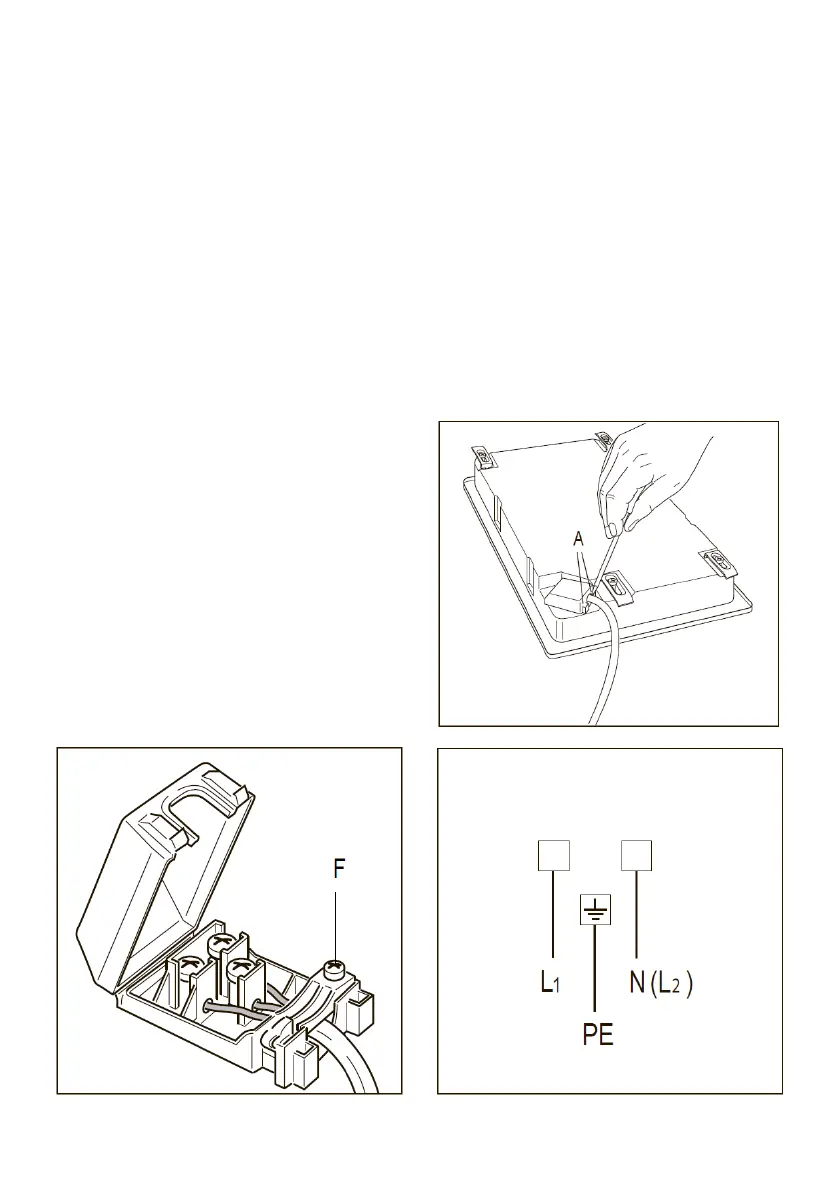 • Otvorite kabelsku uvodnicu odvrtanjem vijka „F“ (sl. 2.2), odvrnite priključne vijke i uklonite