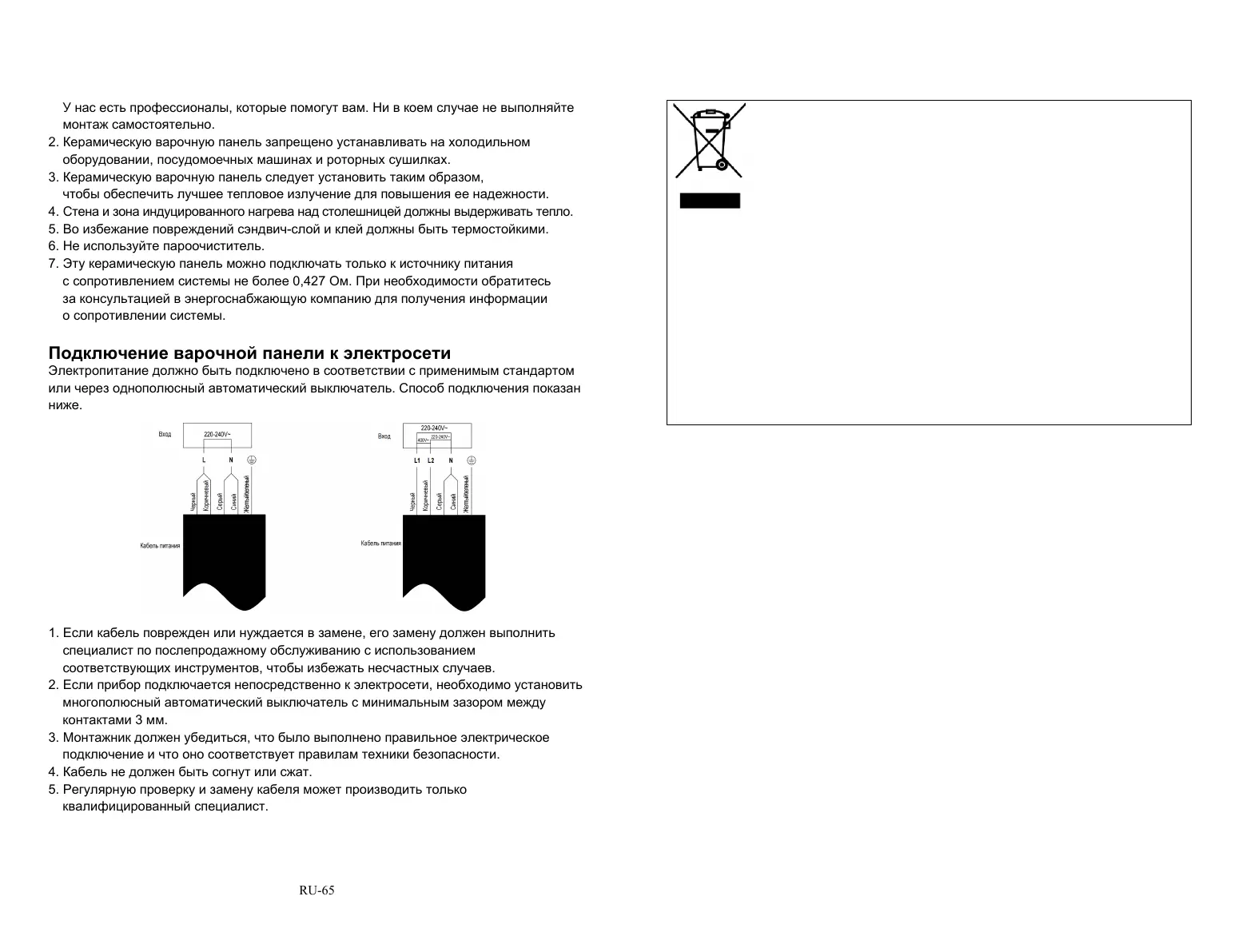 5. Регулярную проверку и замену кабеля может производить только