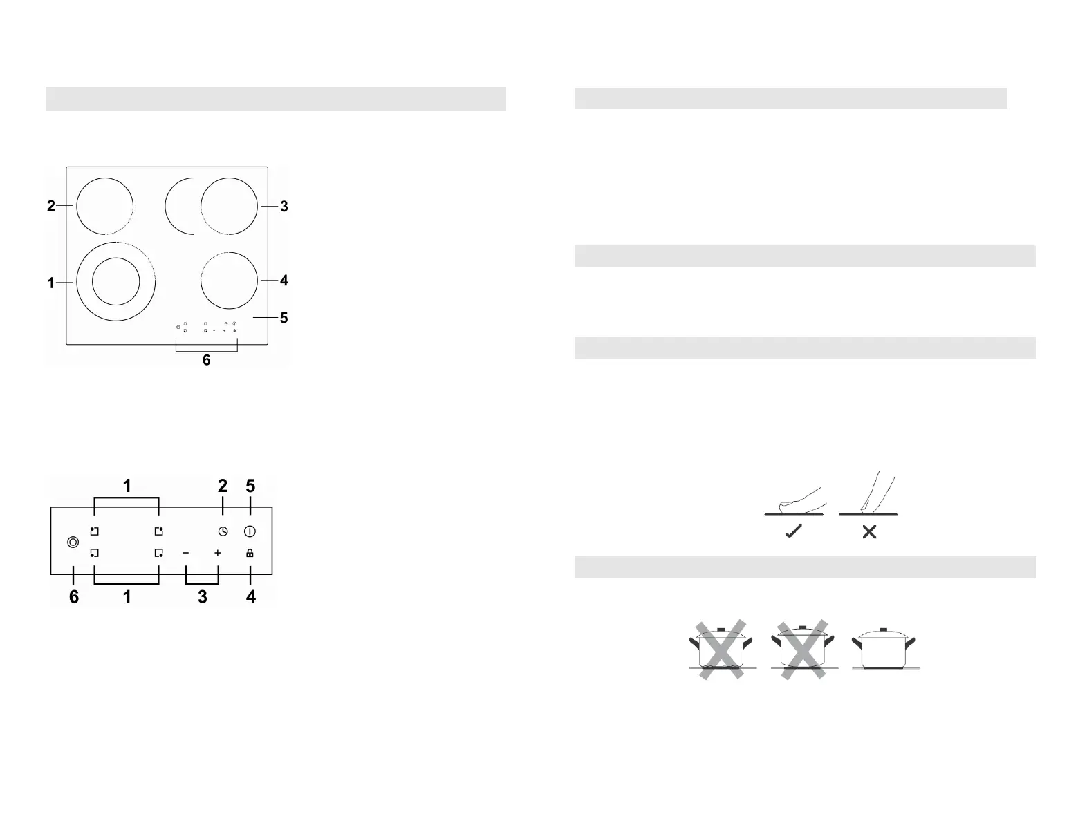 the same size as the cooking zone. Always centre your pan on the cooking zone.