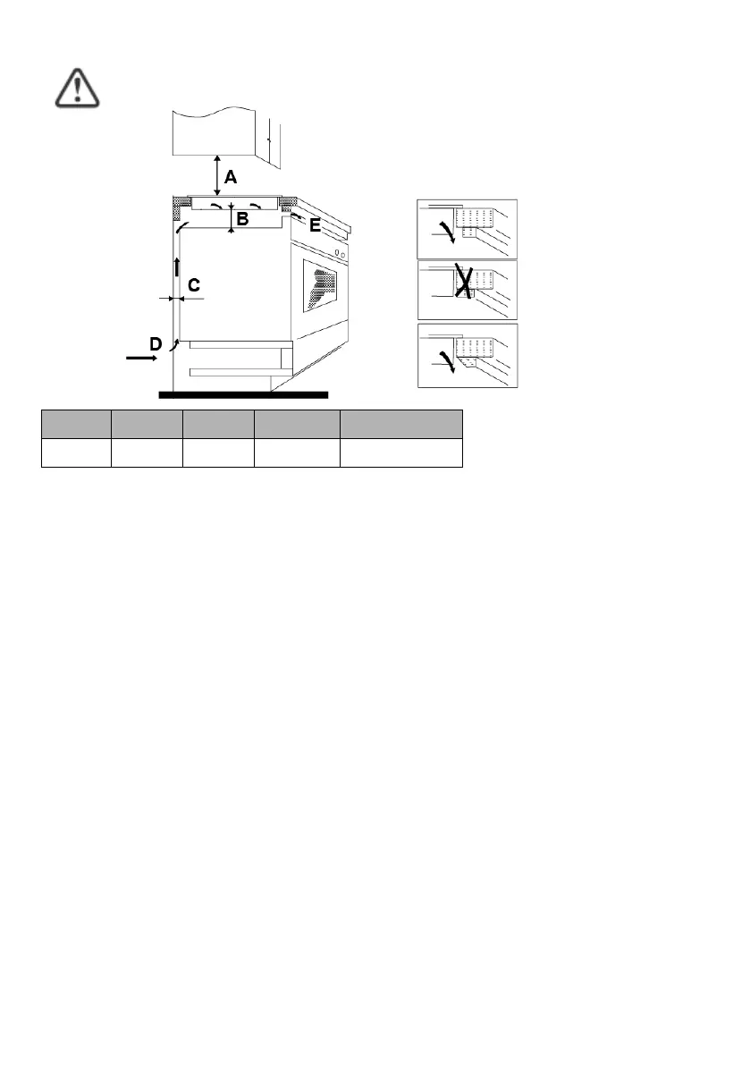 Note: The safety distance between the hotplate and the cupboard above