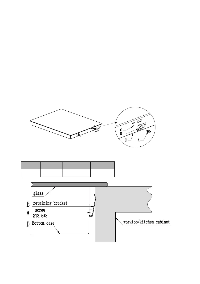 Fix the hob on the work surface by screw 4 brackets on the bottom case of hob