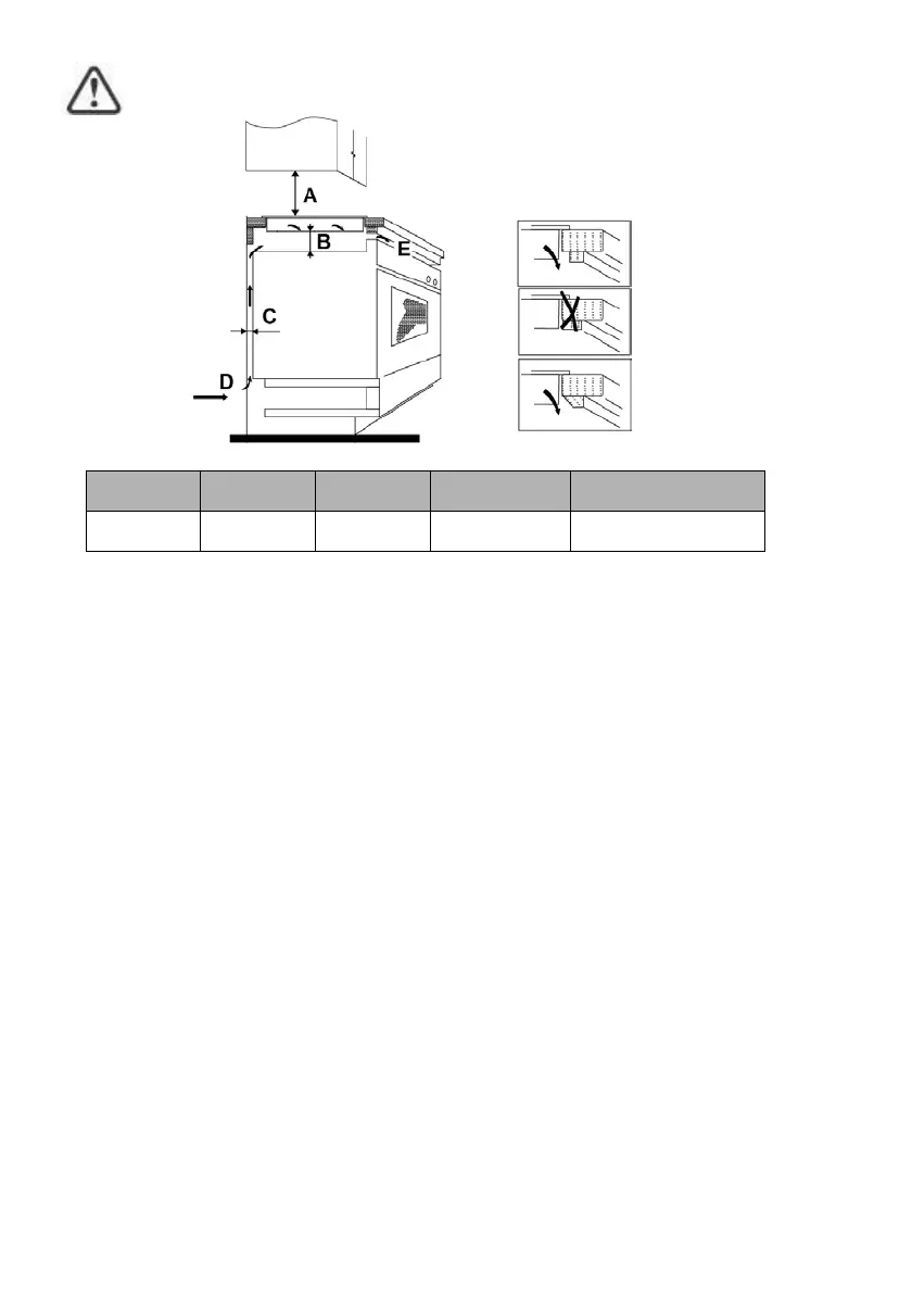 Opomba: Zaradi varnosti med kuhalno ploščo in omarico nad