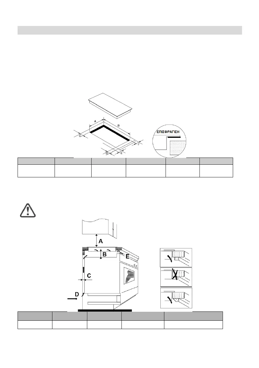 Σημείωση: Η απόσταση ασφαλείας μεταξύ της εστίας και του ντουλαπιού
