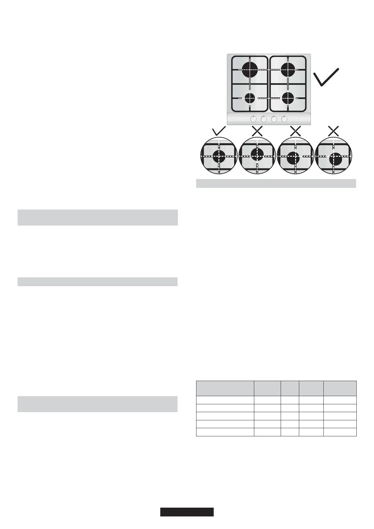 A tűzhelylap bekapcsolása előtt ellenőrizze, hogy a gázégők és az
