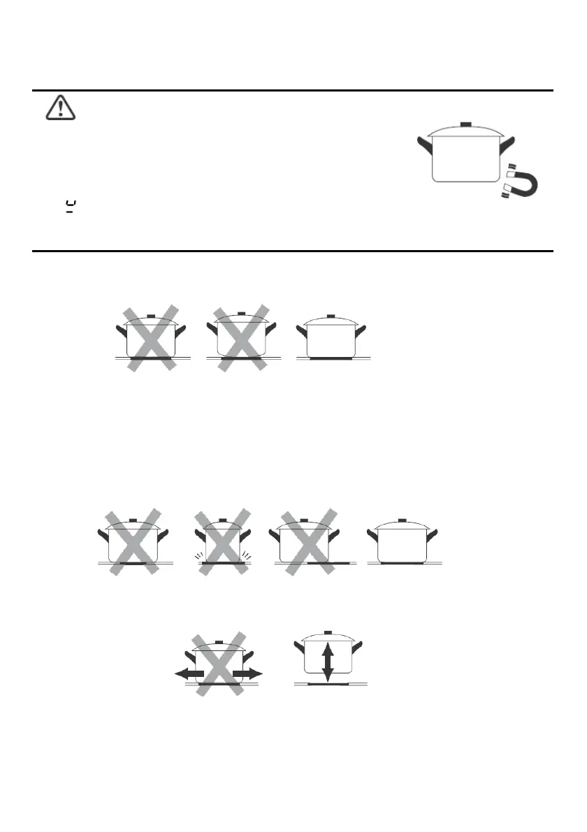 • Cookware made from the following materials is not suitable: pure stainless steel, aluminium or