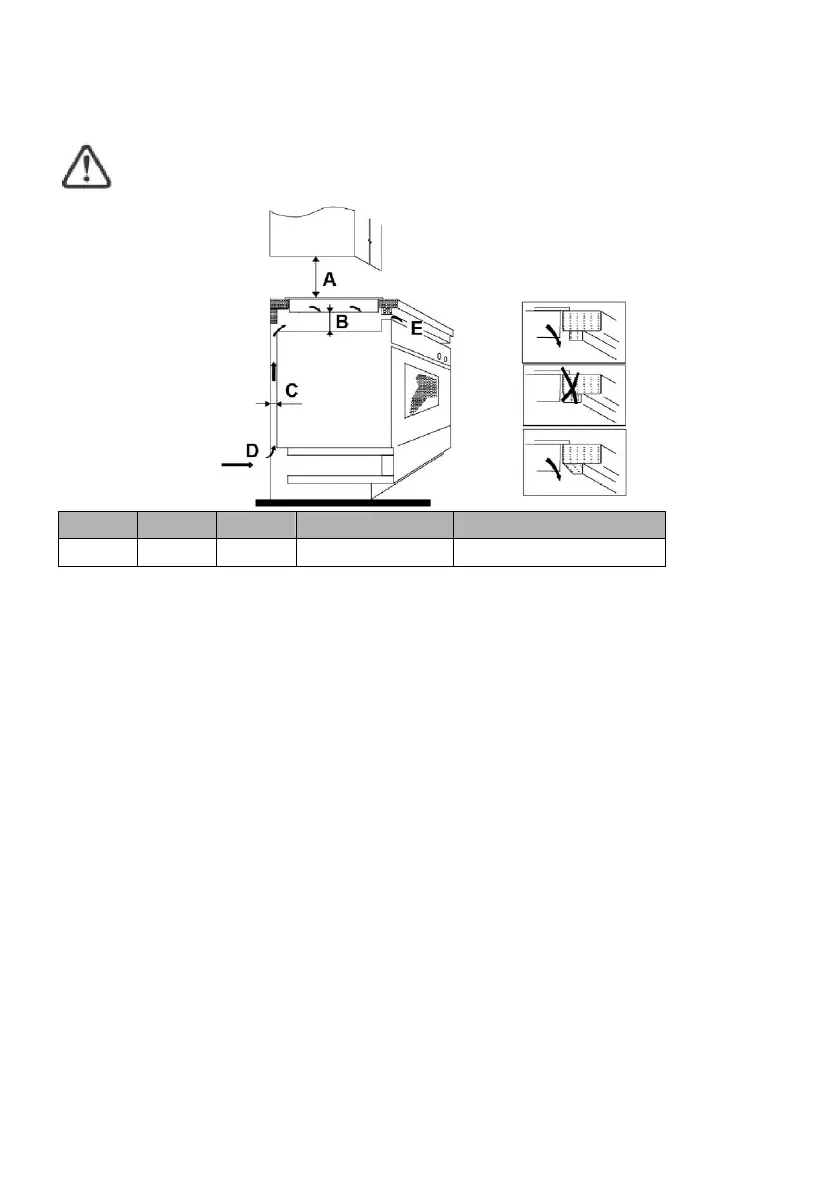 Nota: la distanza di sicurezza tra il piano cottura e i pensili sovrastanti