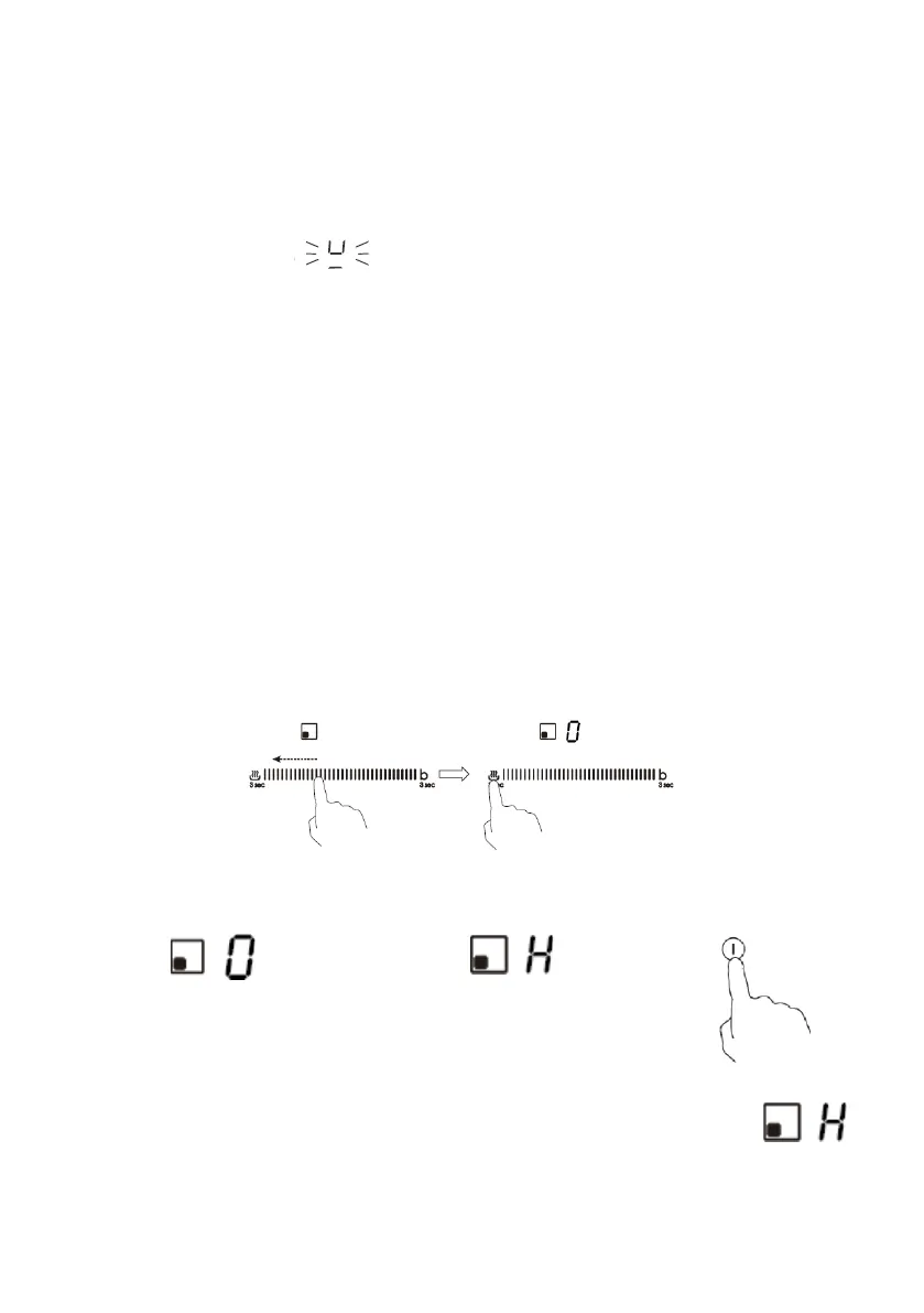 1. Desligue a zona de cozedura deslizando ao longo do "—" para o ponto