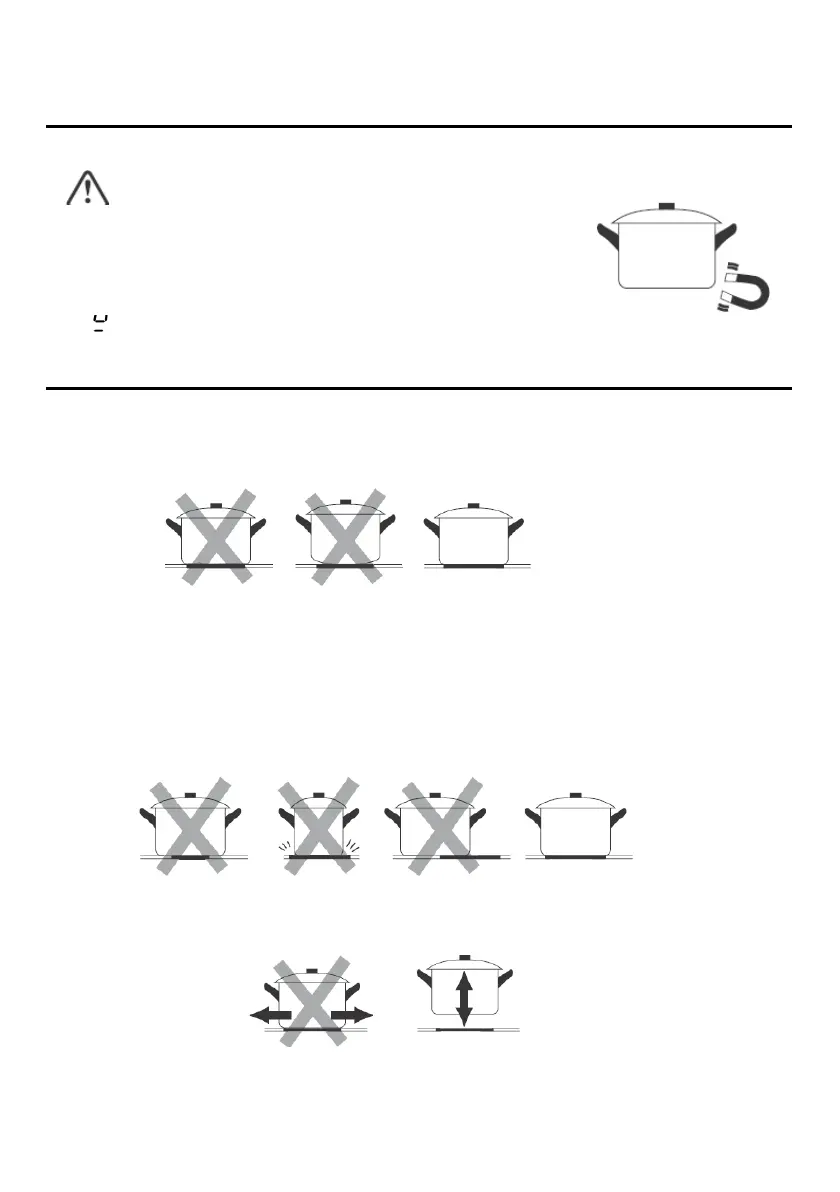 • Cookware made from the following materials is not suitable: pure stainless steel, aluminium or