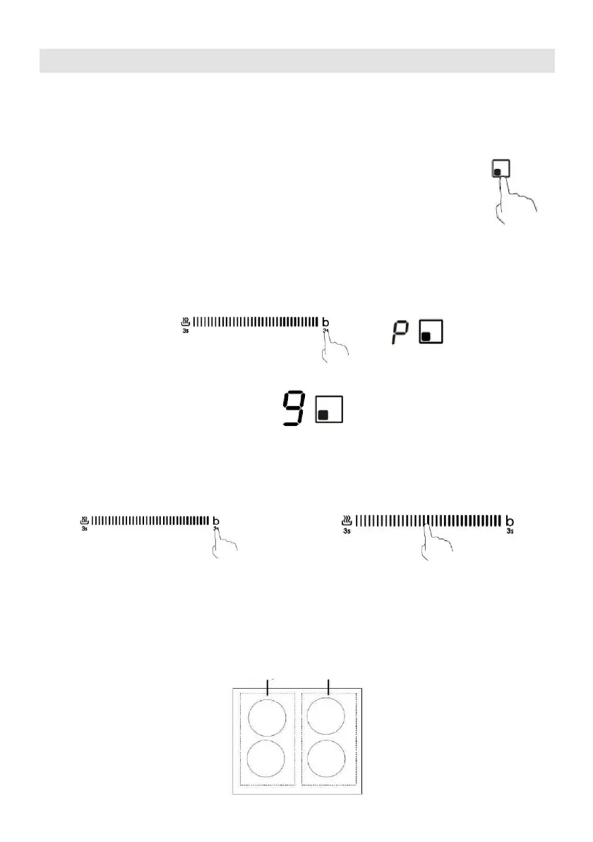 lungo "–" fino al punto sinistro; la zona scaldante torna alla potenza precedente.