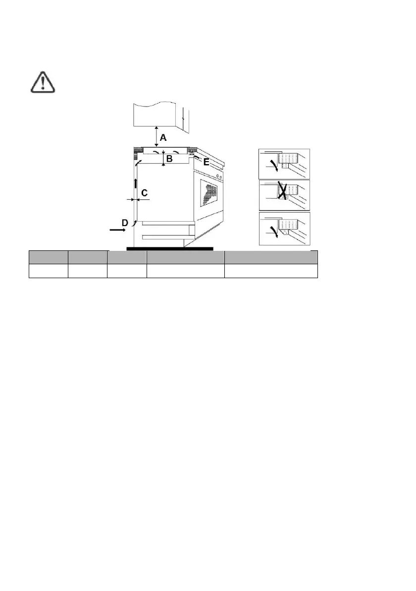 Nota: la distanza di sicurezza tra il piano cottura e i pensili sovrastanti