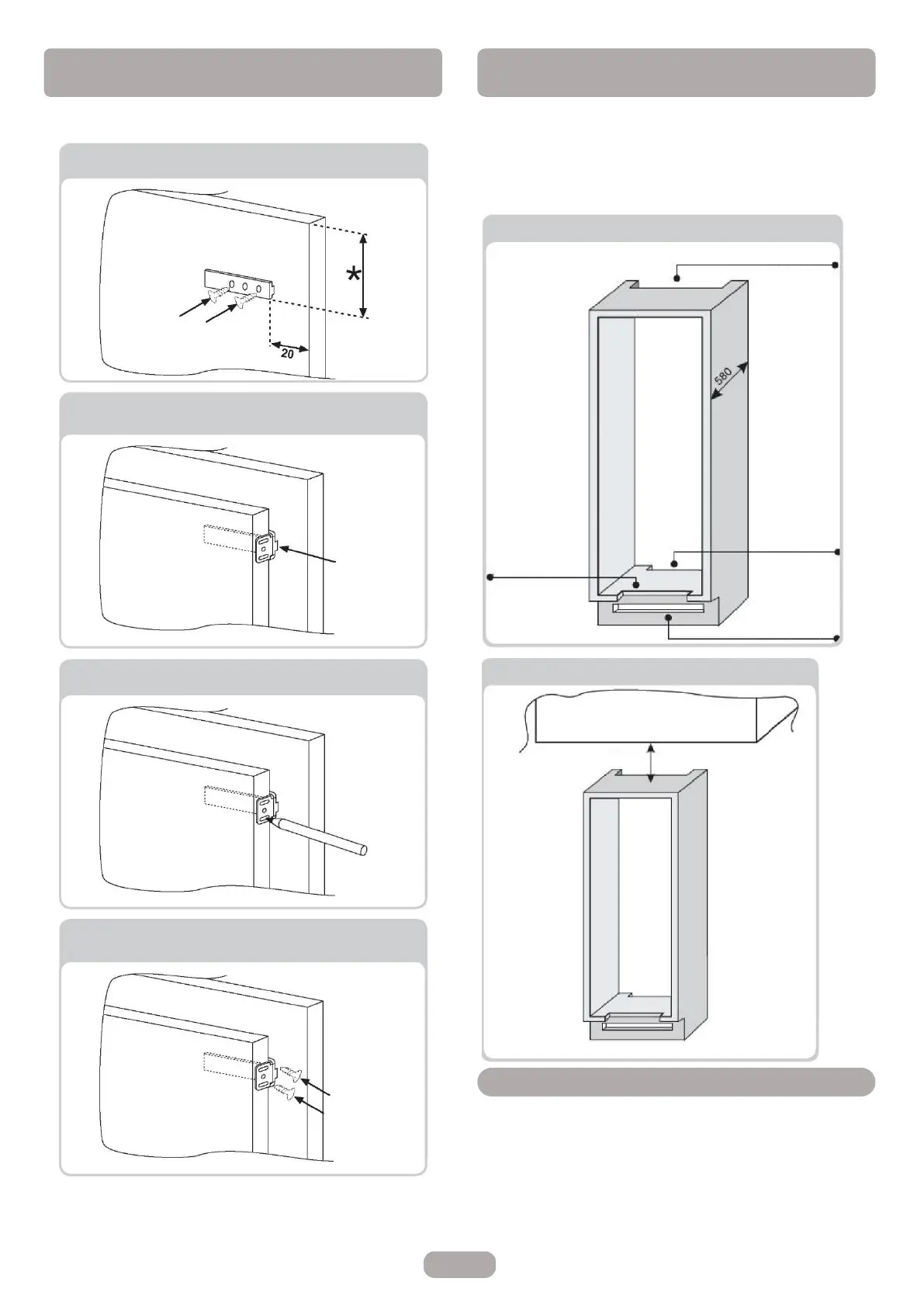 Åpne dørene til den innebygde søylen og kjøleskapet. Plasser den
