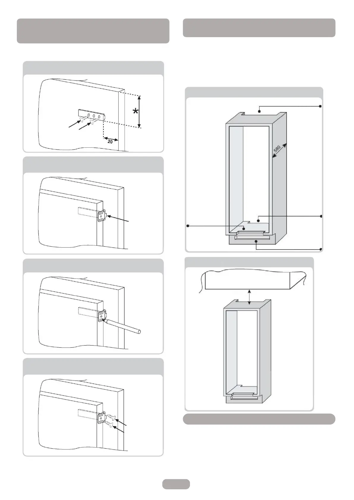 Öppna dörrarna till den inbyggda pelaren och kylskåpet. Placera den