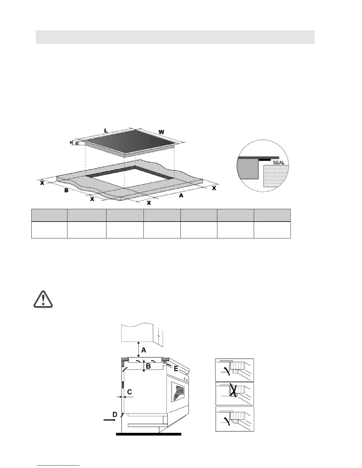 Atención: la distancia de seguridad entre la placa y la alacena encima de