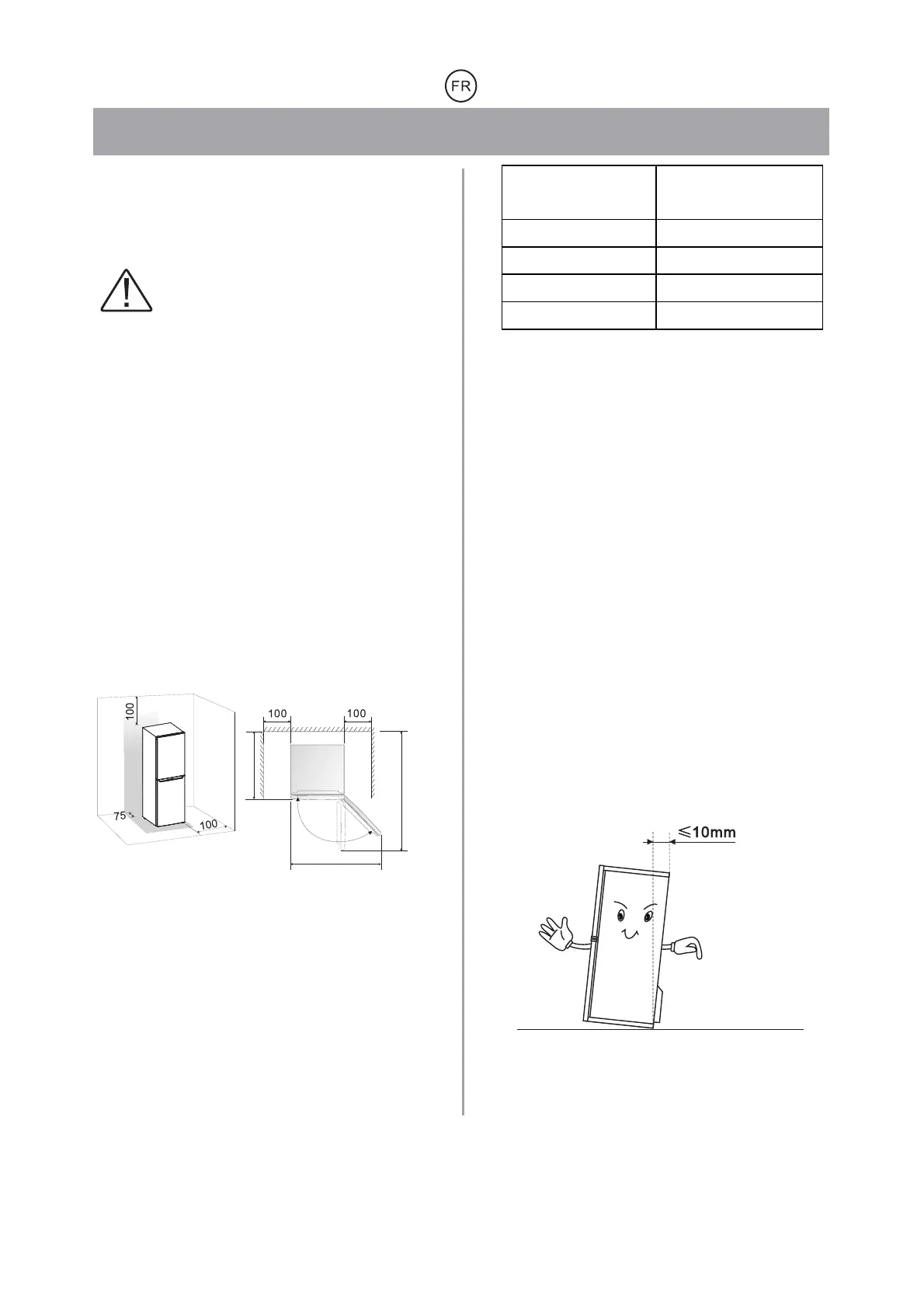 réfrigérateur doit être placé dans un