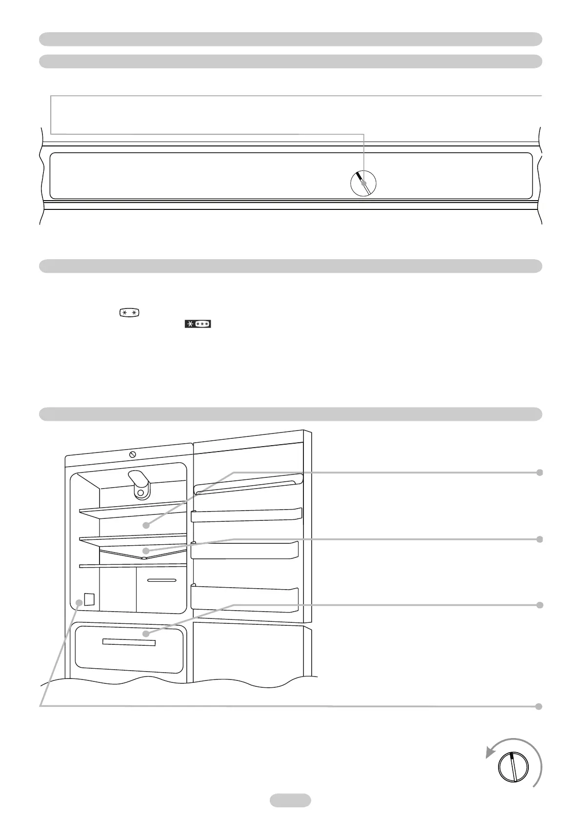 Drei på knotten for å slå på apparatet og stille inn temperaturen til fryseseksjonen og fryseren. Anbefalt innstilling er 2-3. Drei knotten til ”0” eller
