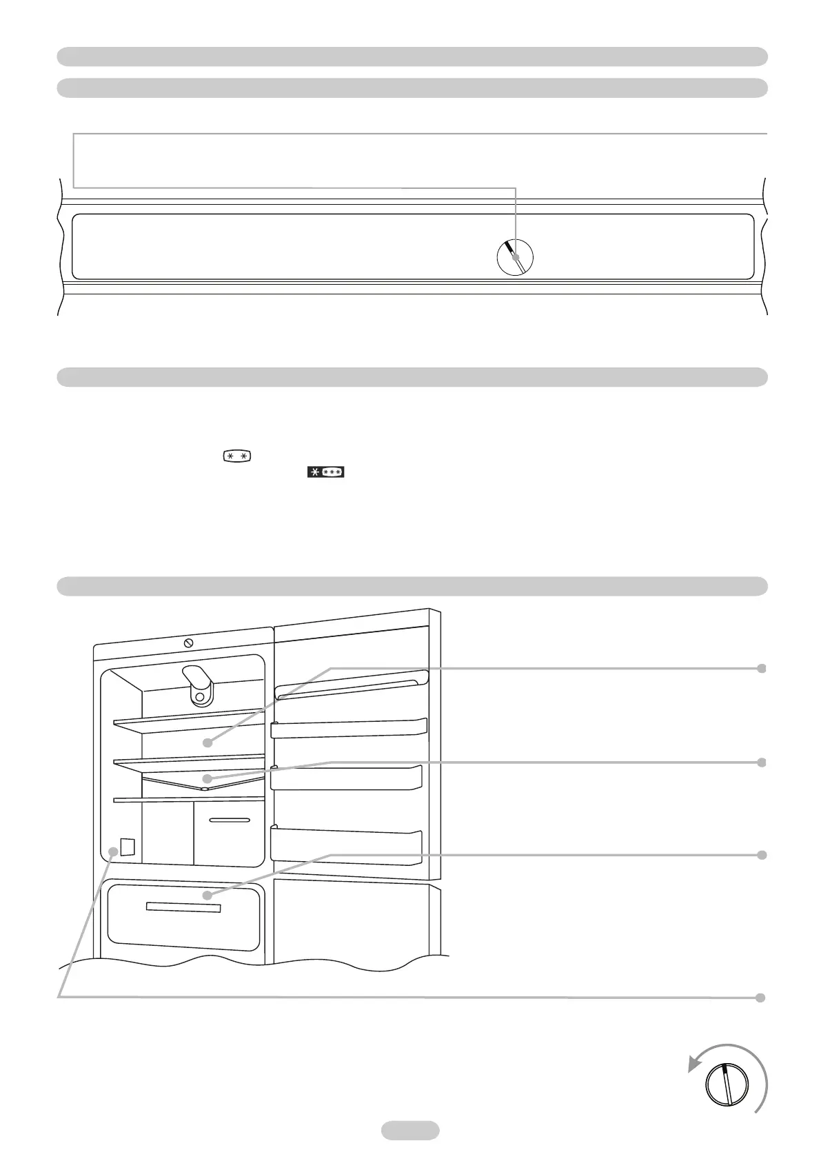 Drehen Sie den Drehknopf, um das Gerät einzuschalten, und um die Temperatur des Gefrierfachs und Kühlschranks einzustellen. Die