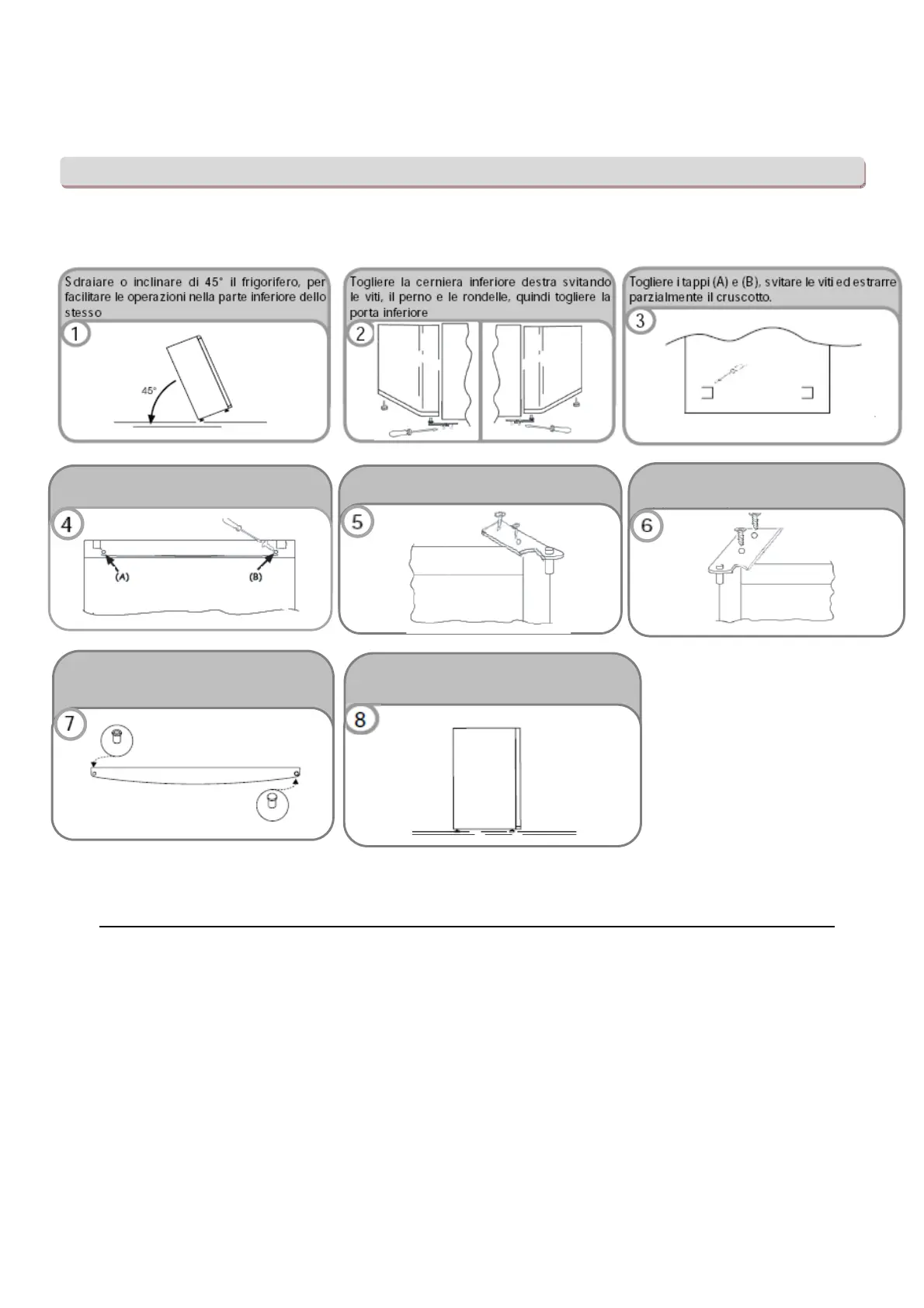 Per invertire il senso di apertura delle porte seguire le indicazioni in relazione al tipo di testata e di cerniera di cui il vostro