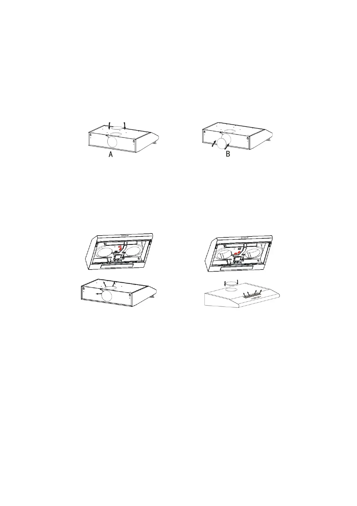 Větrání uvnitř místnosti: Otočte regulátor do polohy uvnitř (Obr. 5B), namontujte na digestoř