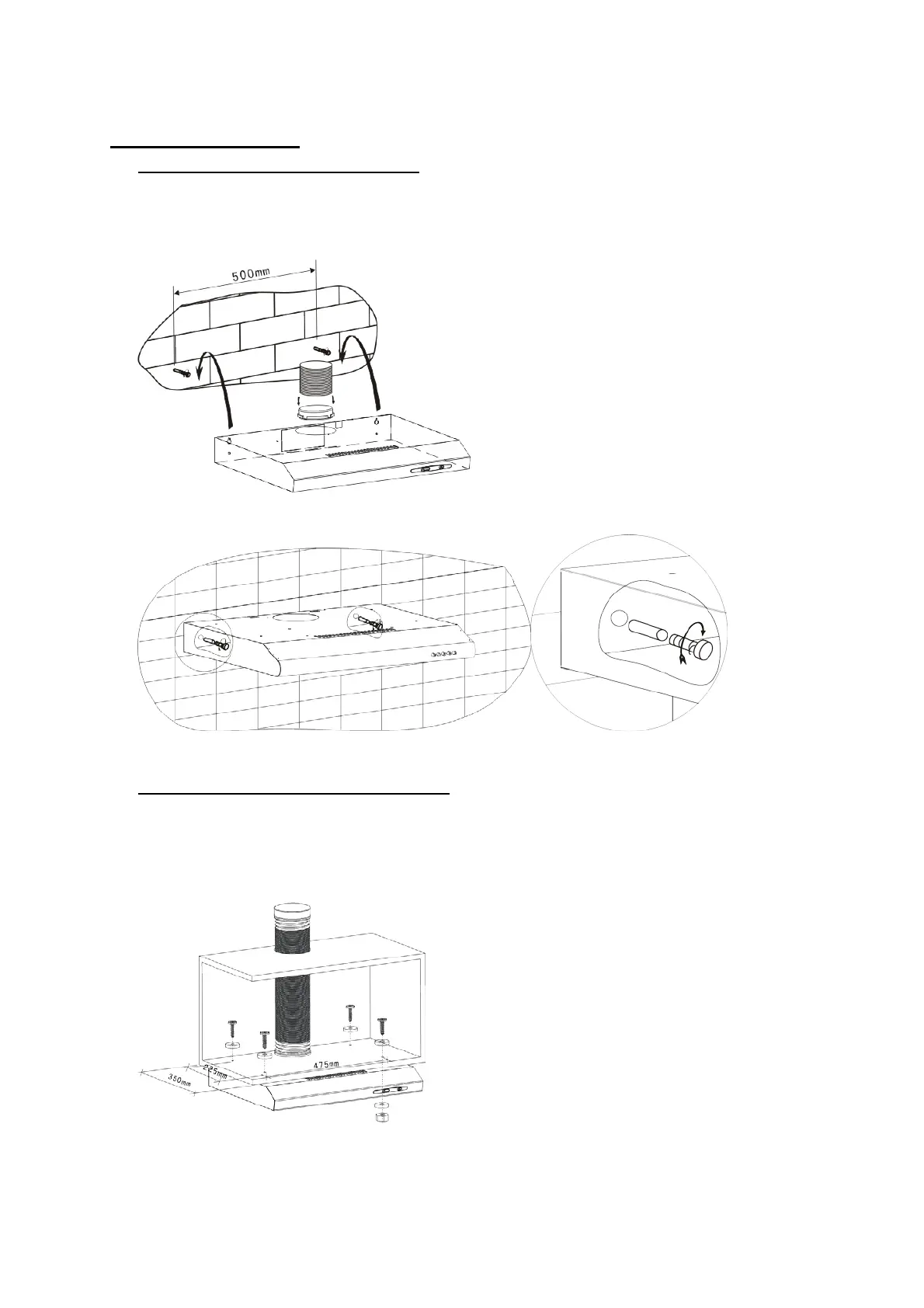 (2) Mount the cooker hood on the wall by 4 screws (4x 30mm)