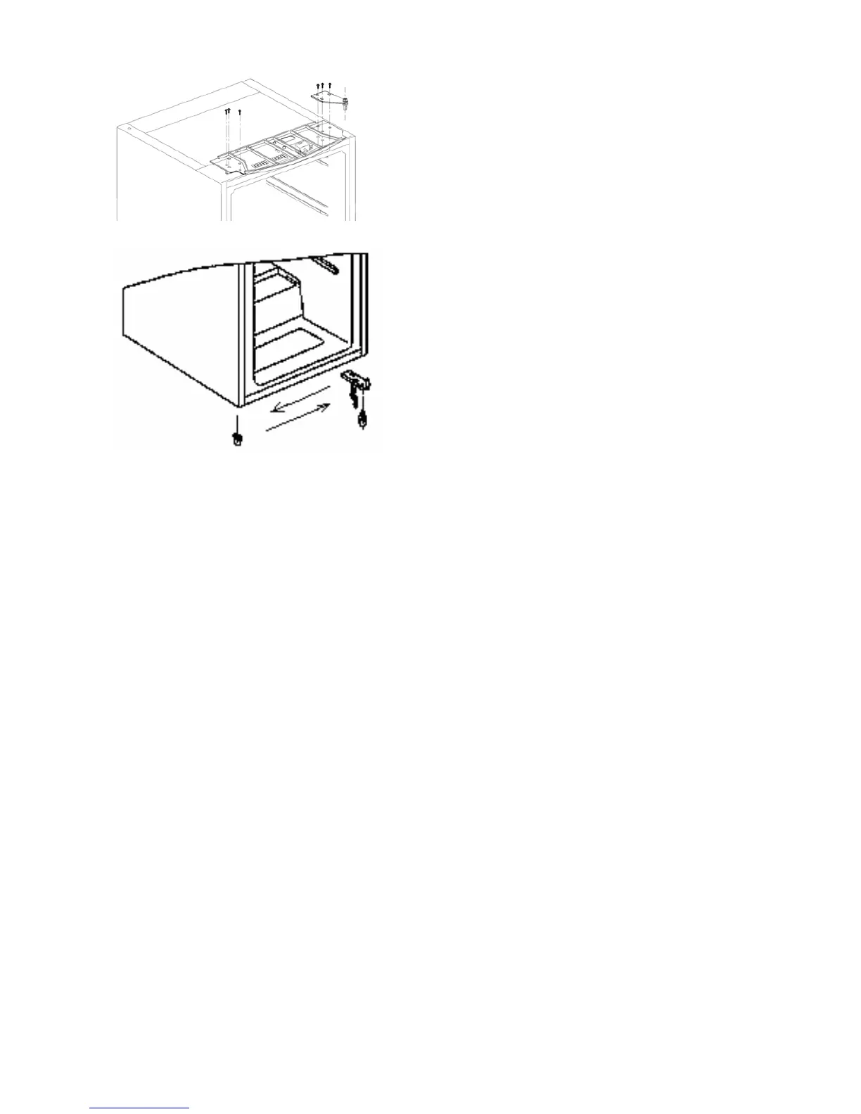 4. Fjern begge justerbare fødder og fjern det nederste hængselsbeslag ved at skrue boltene af.