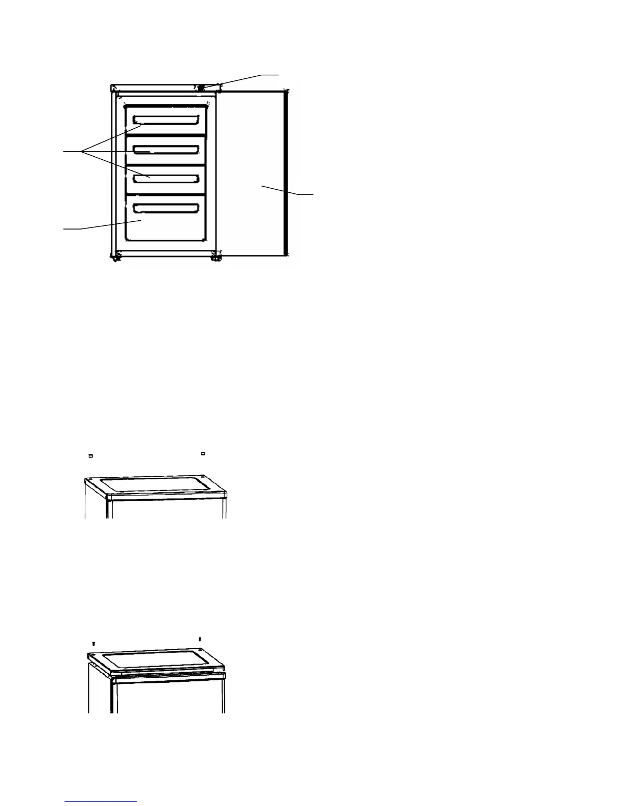 2. Odkręcić śruby i zdjąć górną pokrywę. Zdemontować górny zawias, zdjąć drzwi i umieścić je na