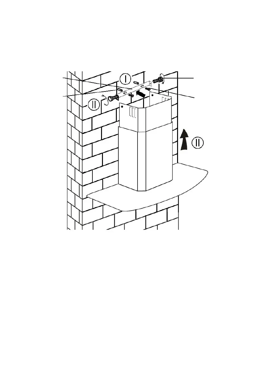 Założyć komin na okap i zamocować 2 śrubami.