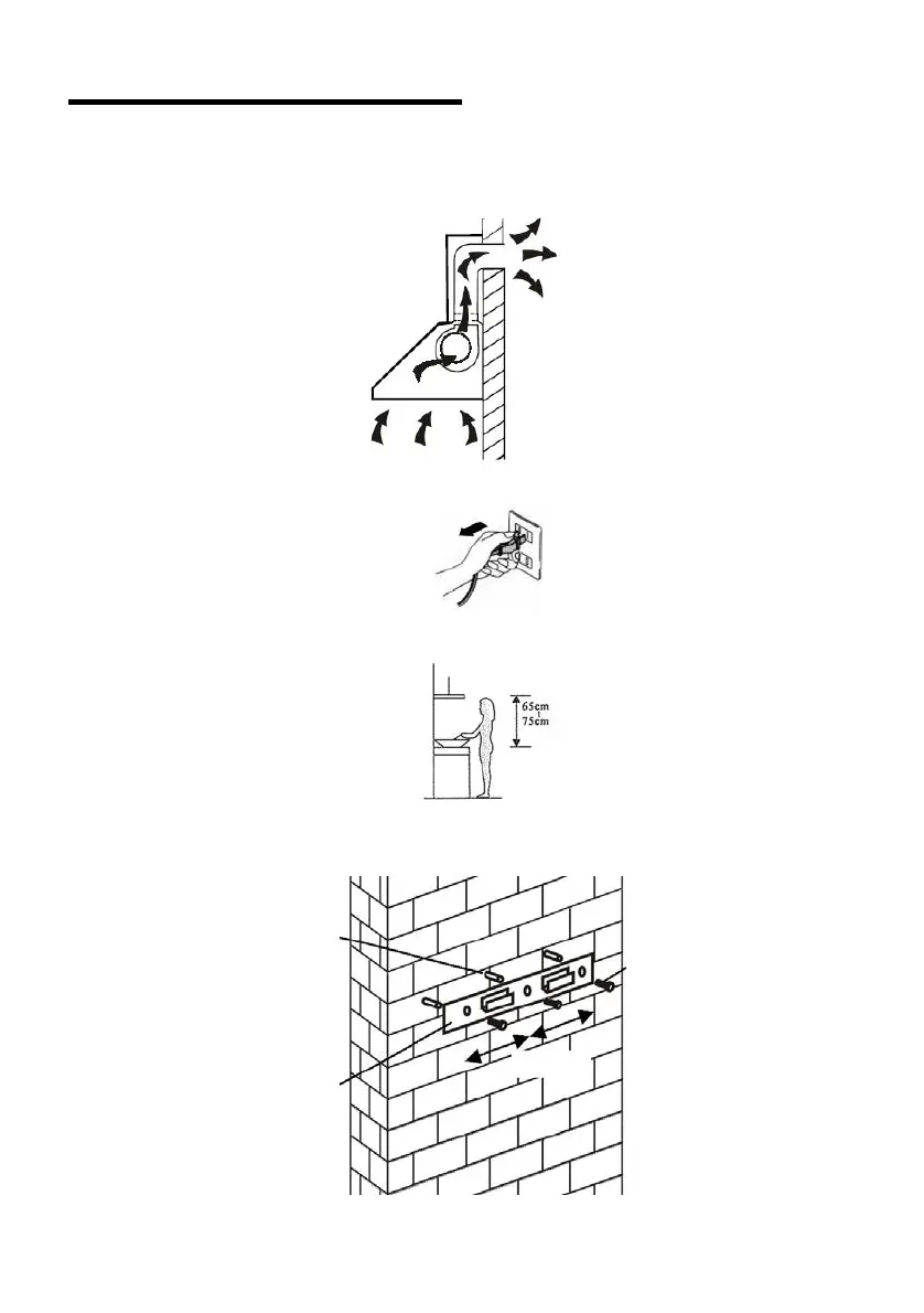 2. The cooker hood should be placed at a distance of 65~75cm above