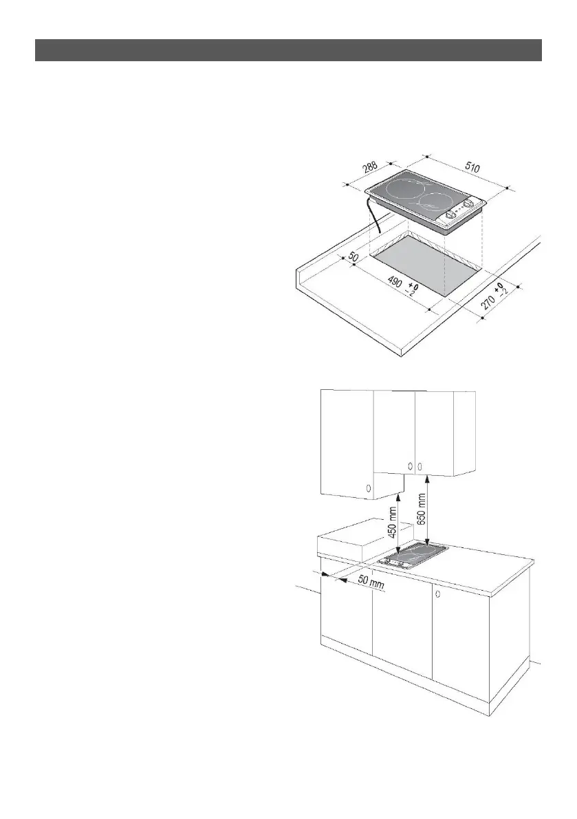 • blatul plitei trebuie ținut la cel puțin 50 mm