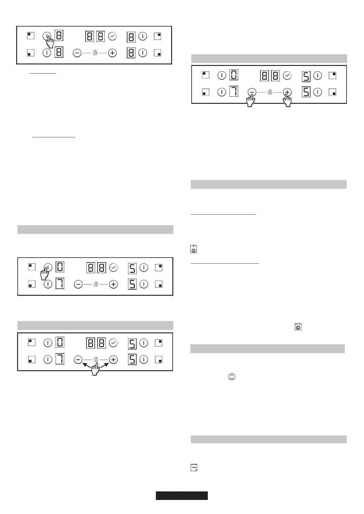 4. Wenn eine Kochzone ausgewählt ist und die Tasten „+“ und „-“