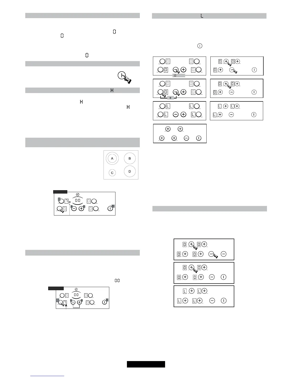 Ifall kokzonen är på nivån "het", blinkar "L" och "H" turvis.