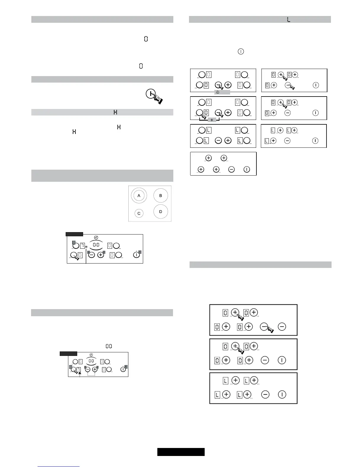 Jos keittovyöhyke on tasolla "kuuma", "L" ja "H" vilkkuvat