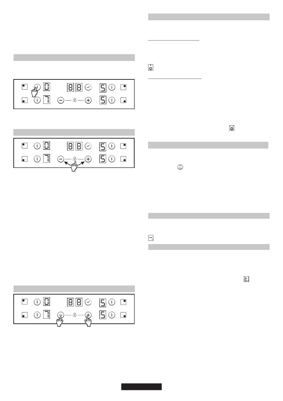 4. Wenn eine Kochzone ausgewählt ist und die Tasten „+“ und „-“