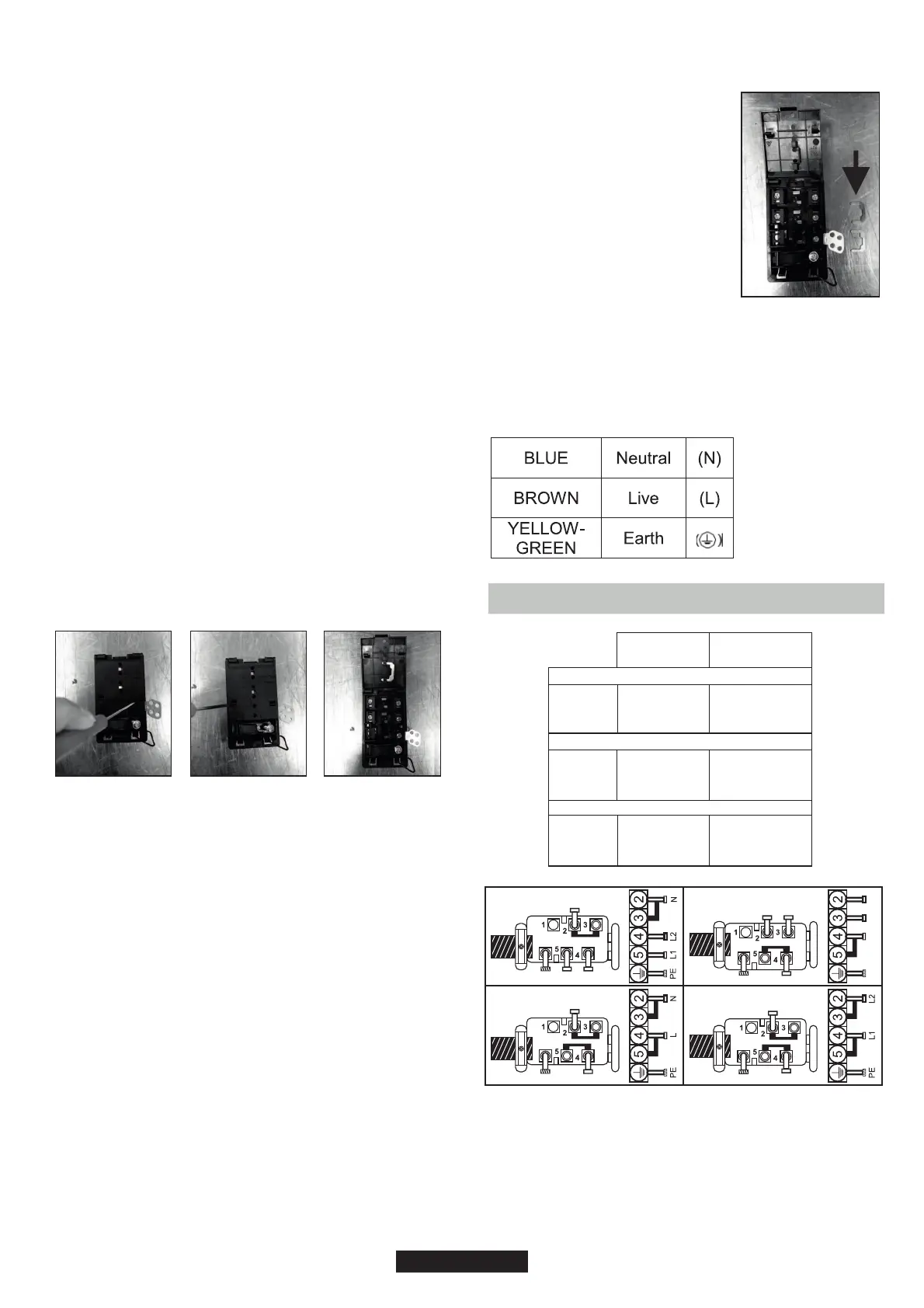The electrical connection to the installation should be made according