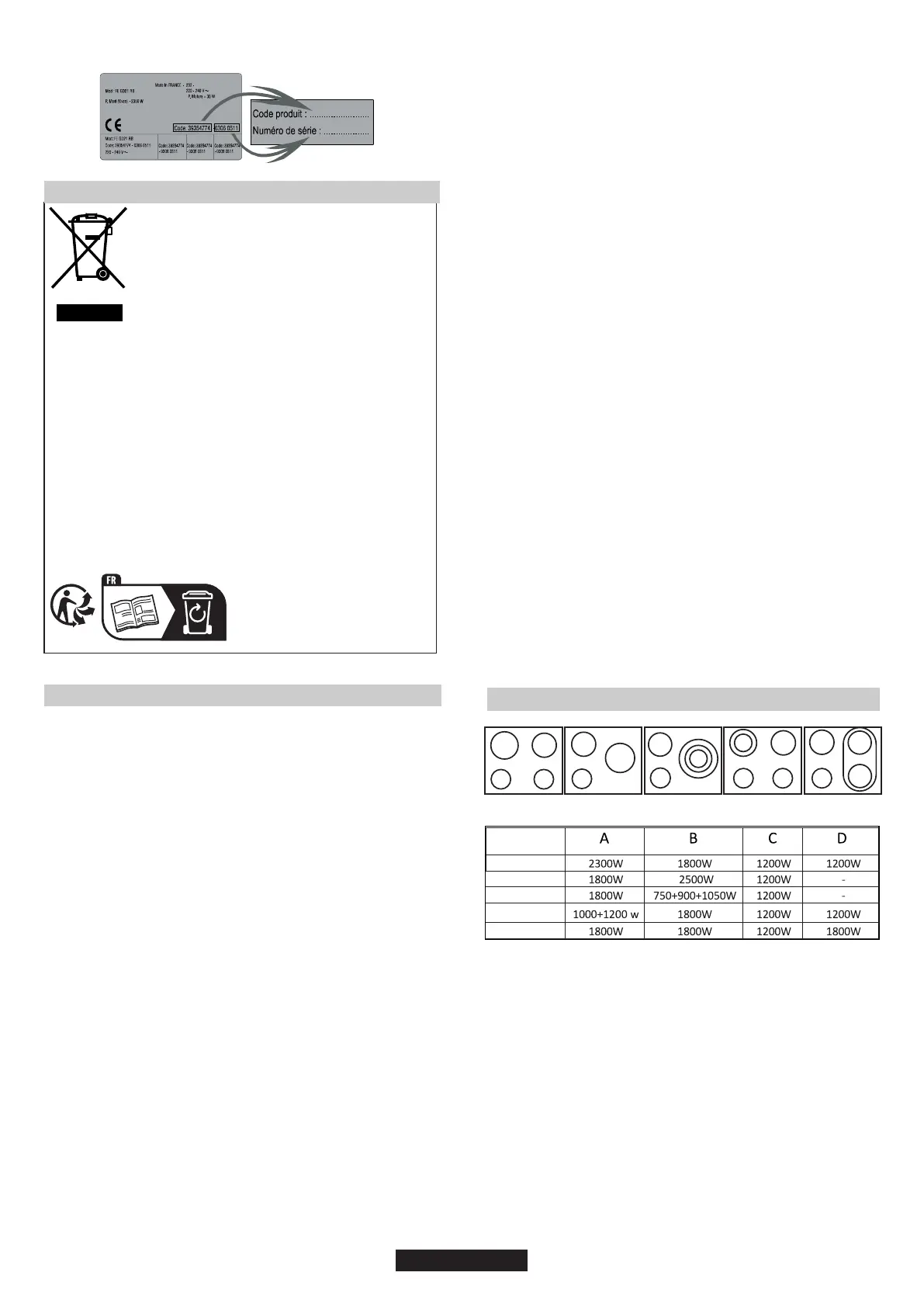 Plaque d'identification (située sous le caisson de la table de cuisson)
