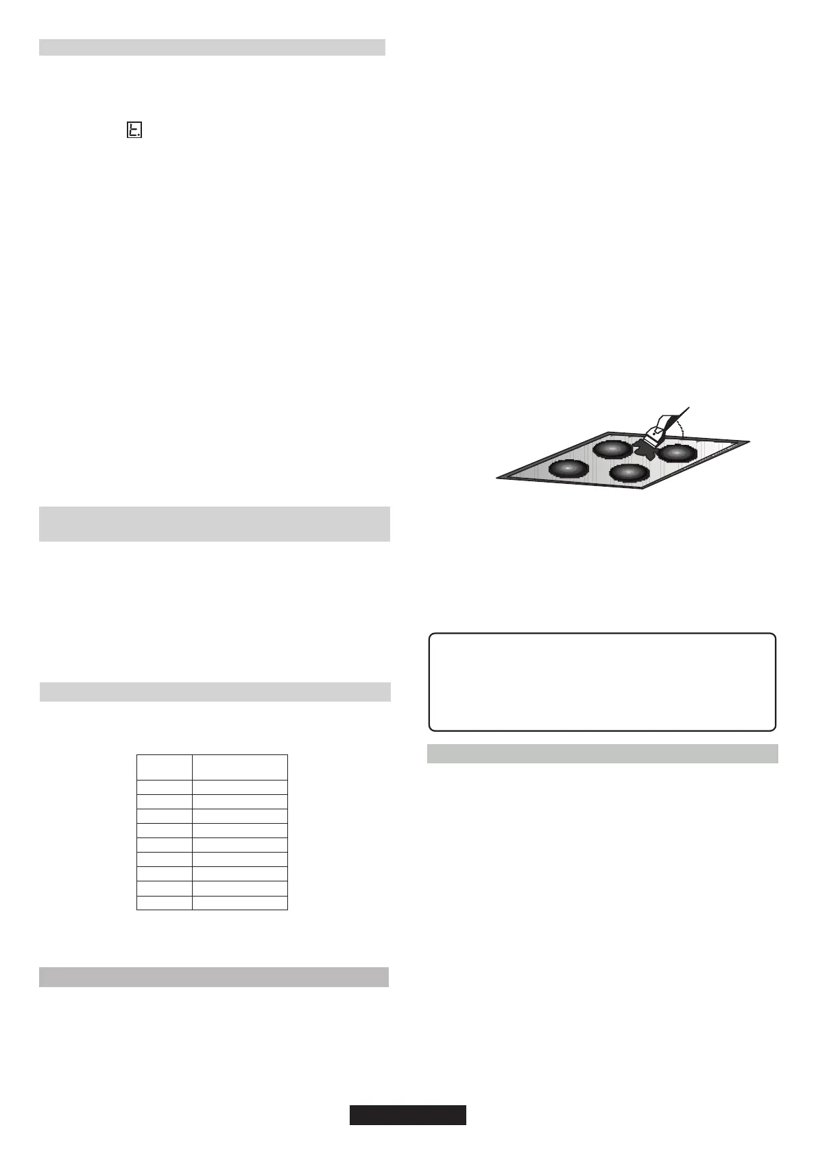 În timp ce temperatura pe suprafaa de sticlă pentru gătit este peste 65°C