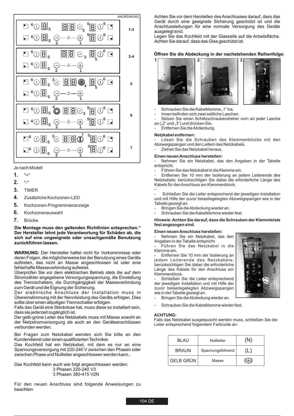 Das Kochfeld kann auch wie folgt angeschlossen werden: