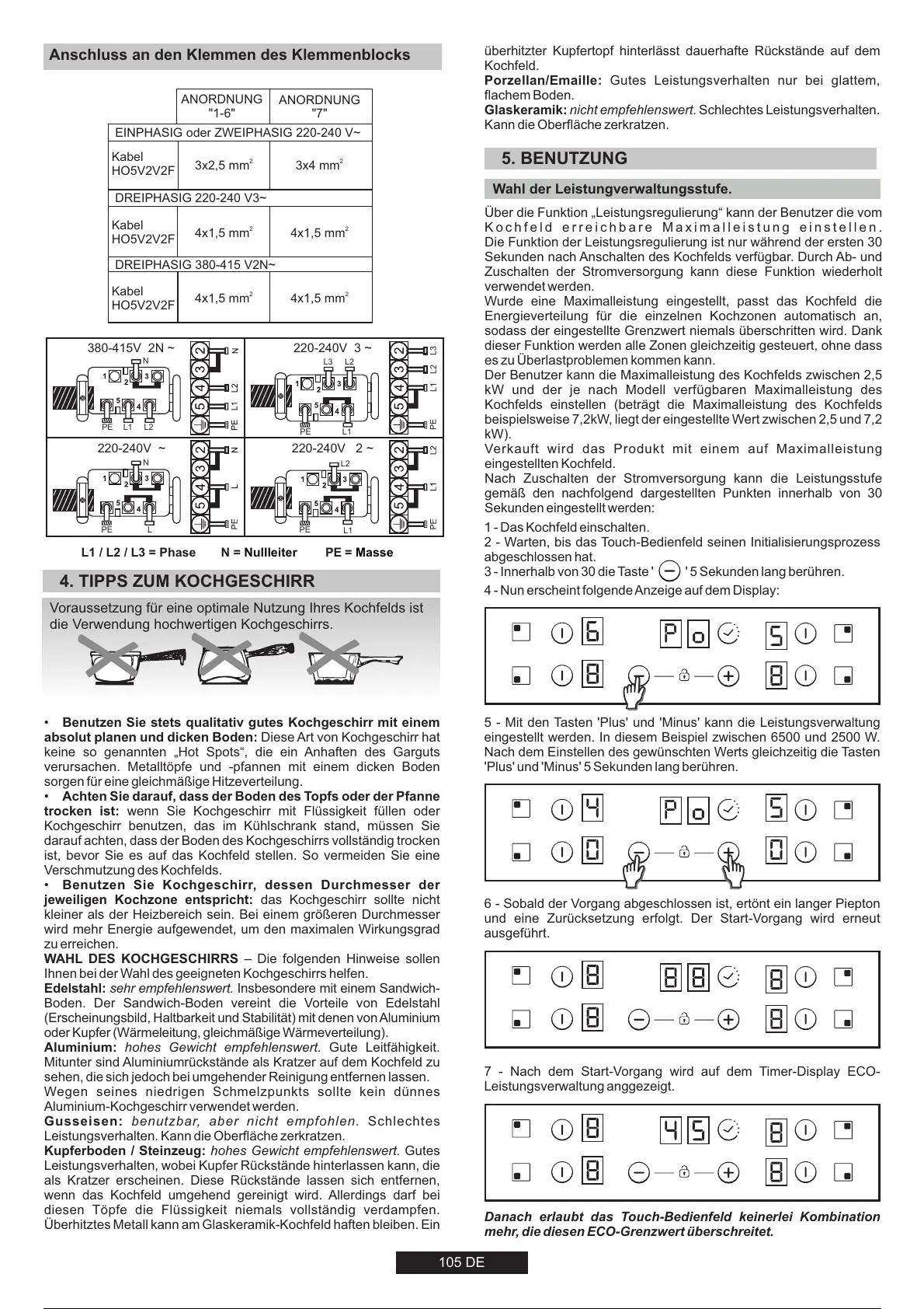 Voraussetzung für eine optimale Nutzung Ihres Kochfelds ist