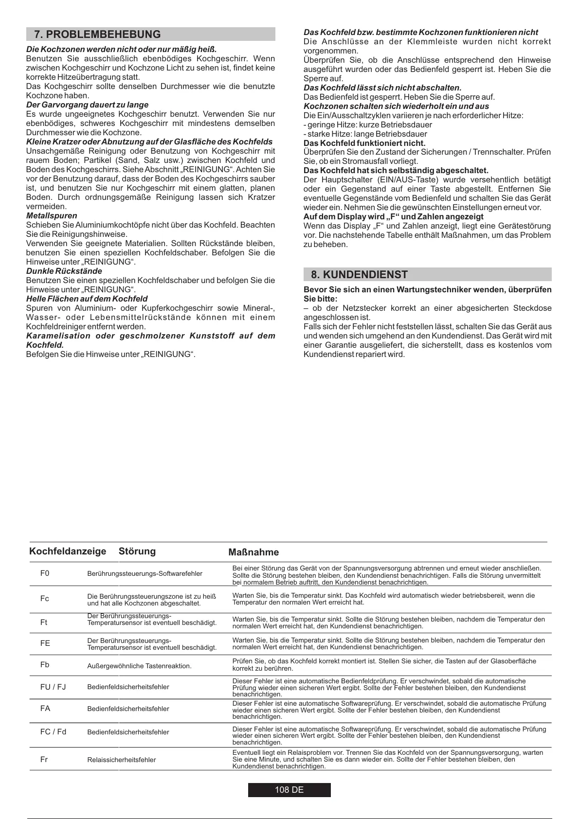 Prüfung wieder einen sicheren Wert ergibt. Sollte der Fehler bestehen bleiben, den Kundendienst