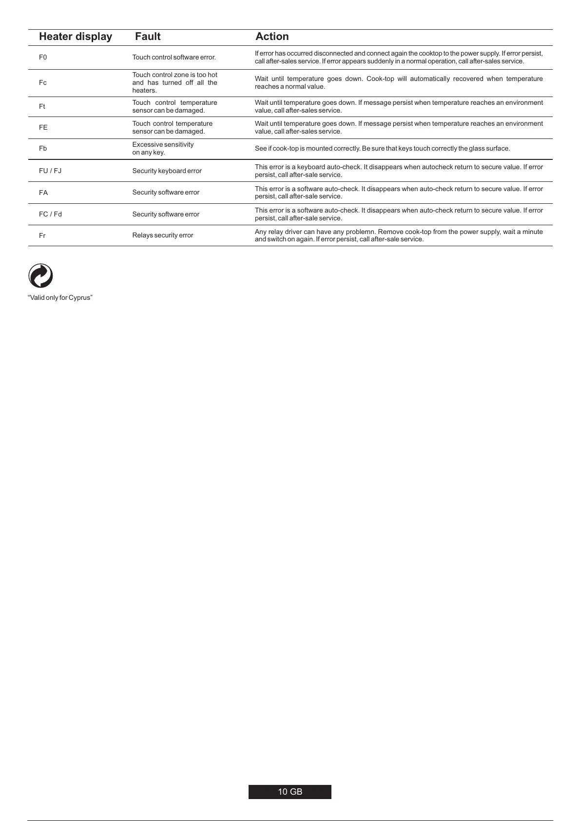 If error has occurred disconnected and connect again the cooktop to the power supply. If error persist,