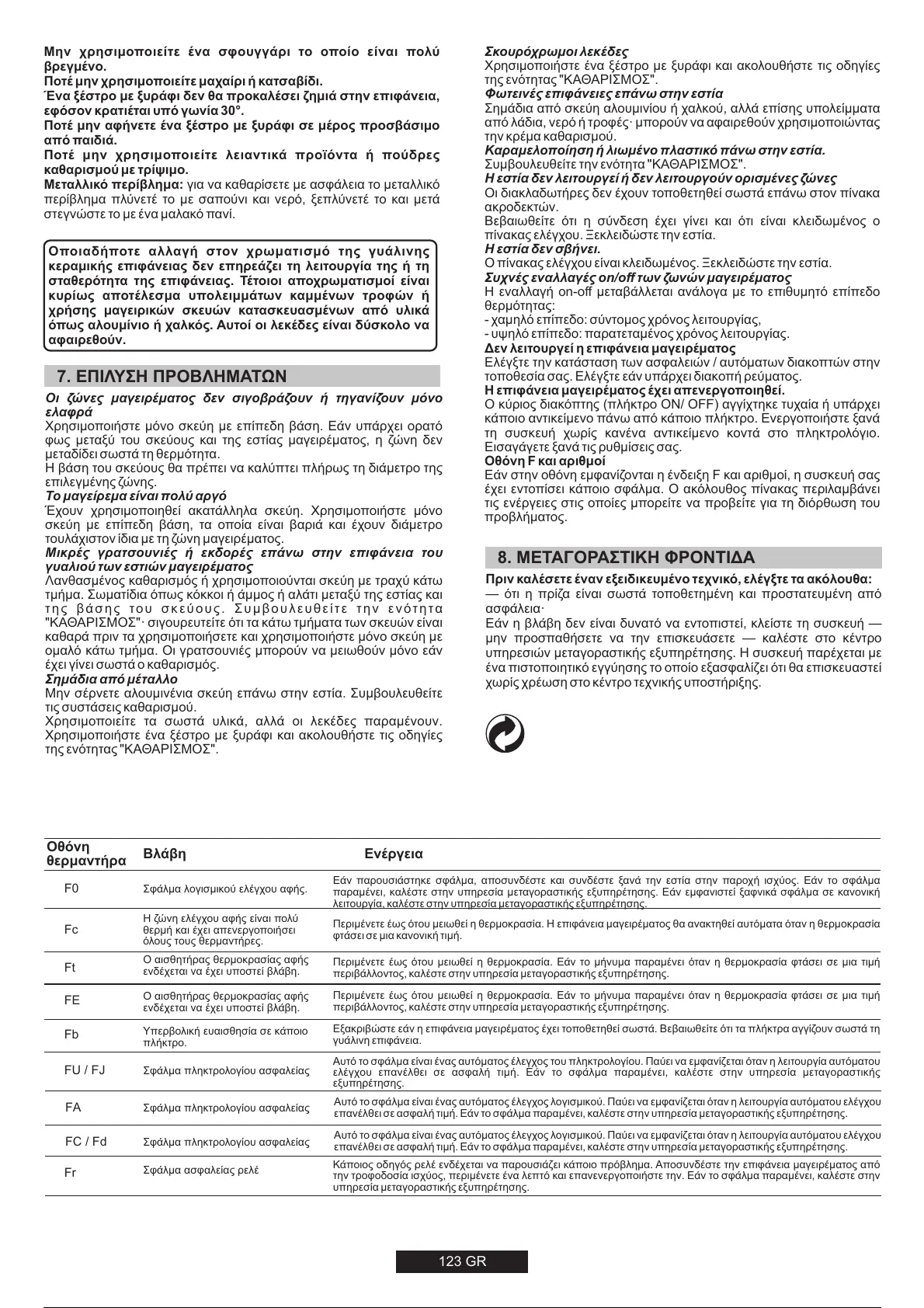 "ΚΑΘΑΡΙΣΜΟΣ"· σιγουρευτείτε ότι τα κάτω τμήματα των σκευών είναι