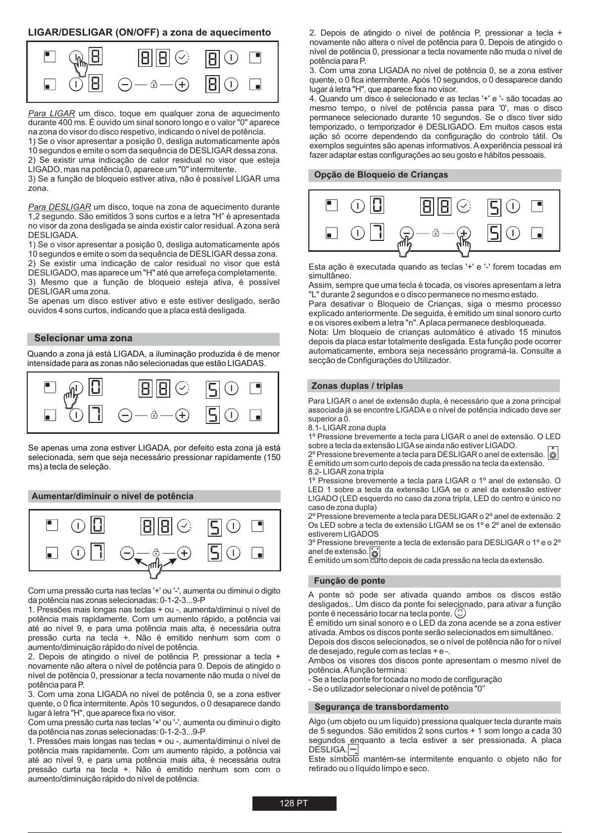 Para DESLIGAR um disco, toque na zona de aquecimento durante