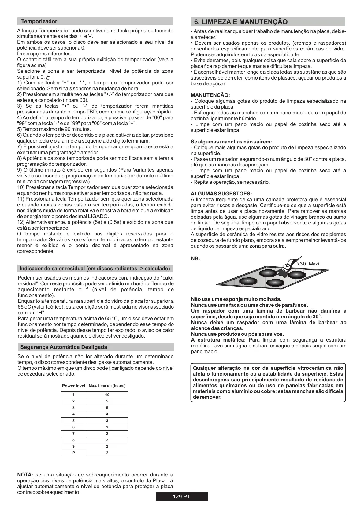 8) A potência da zona temporizada pode ser modificada sem alterar a