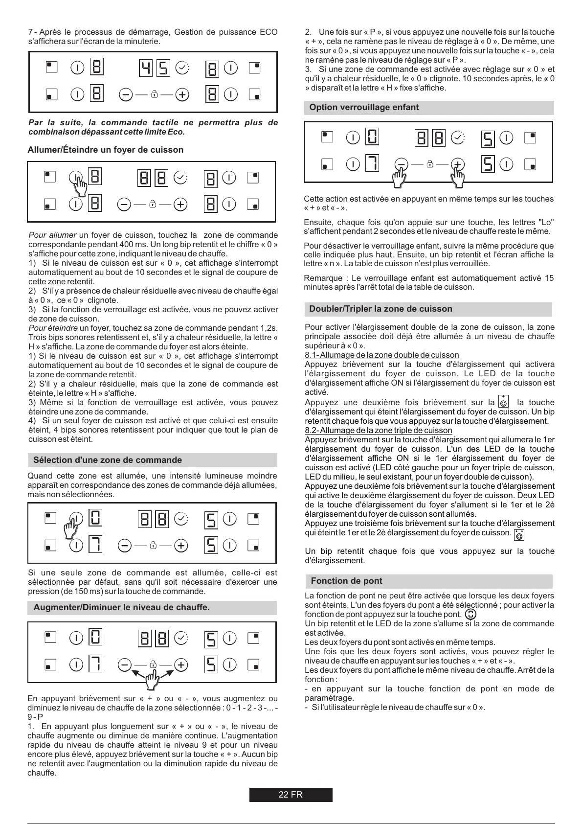 élargissement du foyer de cuisson. L'un des LED de la touche